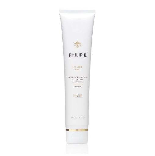 Philip B ® Styling Gel is a multi-purpose, supple, soft-hold gel that adds volume and texture, and gives definition and control to all hair types. With enriching Vitamin B5 (Panthenol) and gel-like Sea Weed Extracts of Irish Moss and Aonori, PHILIP B® Styling Gel gives you a confident, flake-free style.