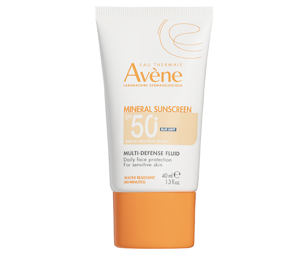 Illuminate your skin with Avene's Mineral Sunscreen Multi-Defense Fluid Tinted SPF 50+! This lightweight formula offers 100% mineral protection from harmful UV rays, pollution, and blue light. Plus, with 40 minutes of water resistance, you can keep glowing all day long. The universal tint adds a touch of natural color for a radiant, even complexion.