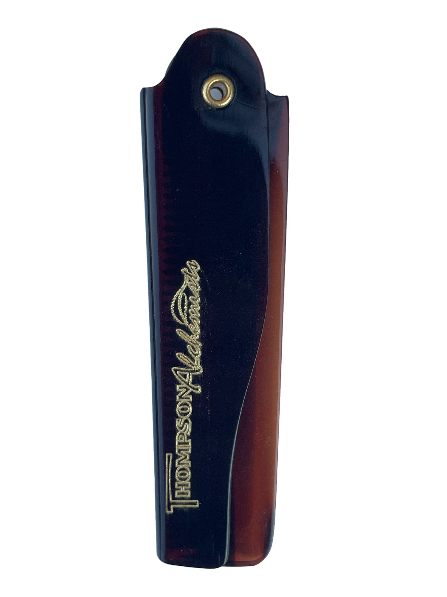 Get your hair game on the go with Thompson Alchemists' Foldable Travel Comb. Made with a tortoise shell design, this brush is perfect for traveling and maintaining a sleek look. Fold it up and take it with you wherever you go! (Don't forget to comb your hair after a long flight.)